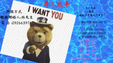 聯絡人: 林志文   電 話: 0926639747 洽談室: 線上洽談 職缺已過期
